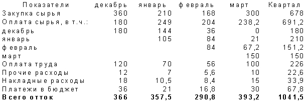 Осуществим разработку кассового бюджета для нашего примера, исходя из следующих условий.