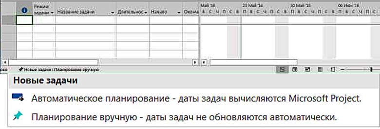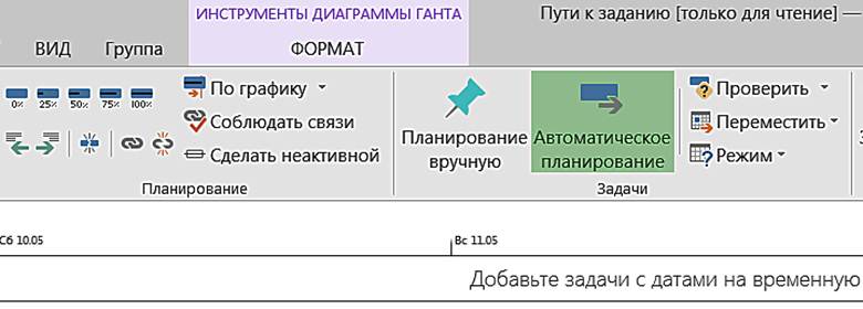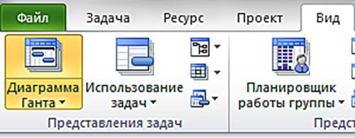 Группы «Представления задач», «Комбинированный режим» и «Представления ресурсов».