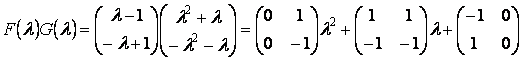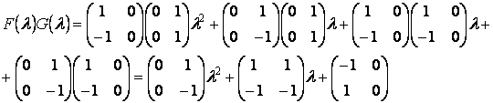 Матричные многочлены одинакового порядка можно складывать, вычитать и умножать аналогично обычным многочленам с числовыми коэффициентами. Следует, однако, помнить, что умножение матричных многочленов, вообще говоря, не коммутативно, т.к. не коммутативно умножение матриц.