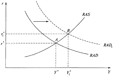 В выражении (2) величина представляет собой кейнсианский мультипликатор автономных расходов, показывающий, как в ответ на изменение независимых компонент совокупного спроса изменится общий выпуск.