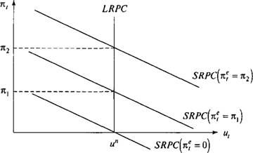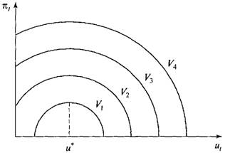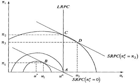 Очевидно, что равновесное значение уровня инфляции (61) меньше,