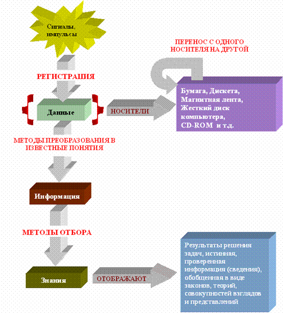 Рис. 4. Принципиальная схема взаимосвязи таких понятий, как «данные», «информация», «знания»