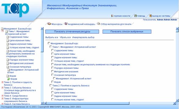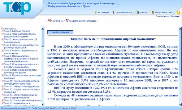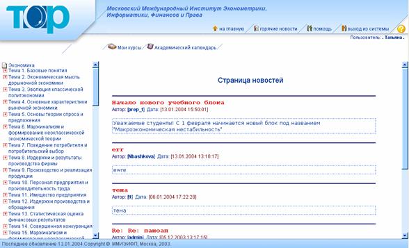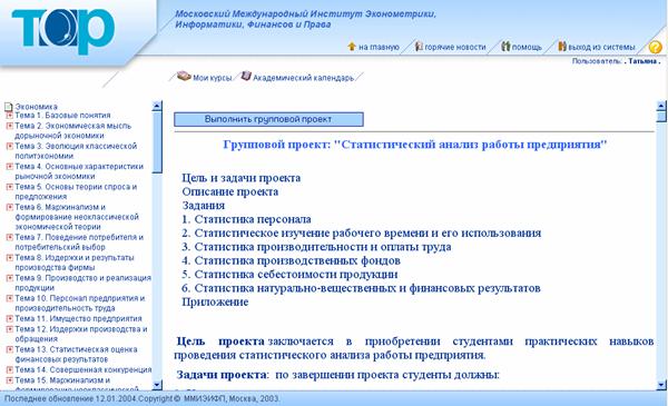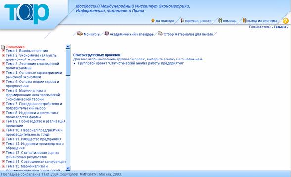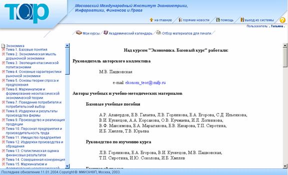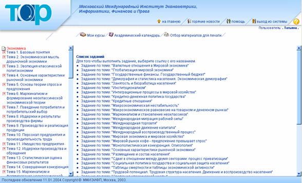 В соответствии с данной мировой тенденцией ММИЭИФП разработал собственную среду - ТОР, позволяющую интегрировать образовательные ресурсы.