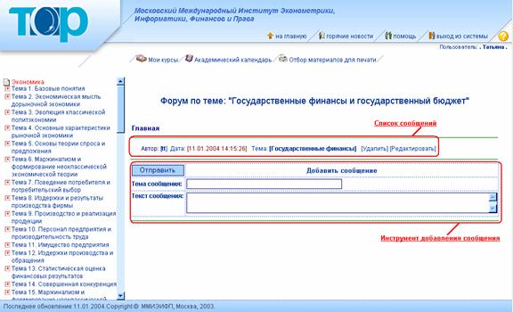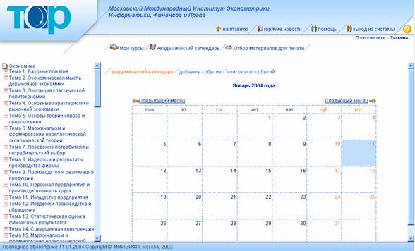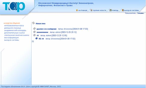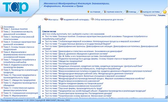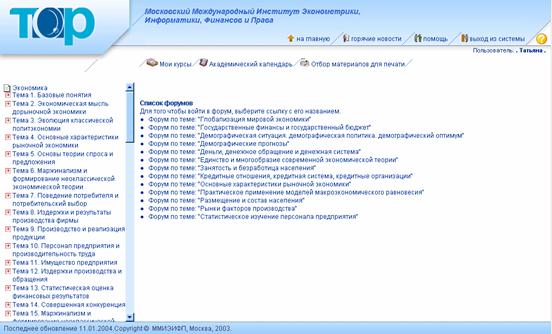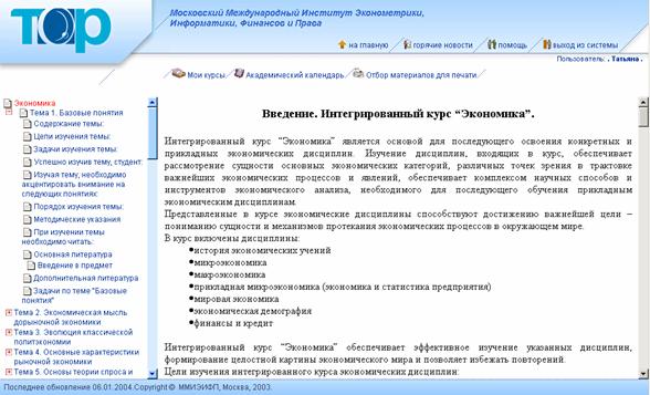 Именно таким образом на сегодняшний день организовано обучение тысяч студентов Московского международного института эконометрики, информатики, финансов и права. Поэтому использование электронных интегрированных учебных курсов (ЭИУК) является составной частью учебного процесса.