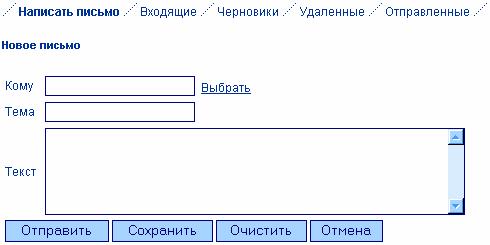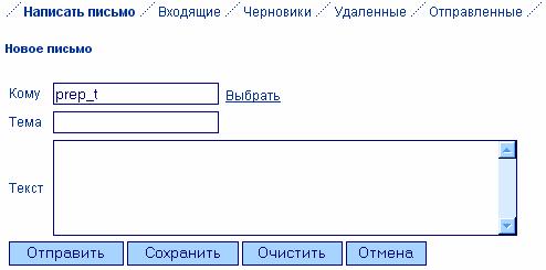 Для написания нового письма необходимо в разделе «Средства общения» перейти по ссылке Локальная почта. В появившемся окне надо выбрать пункт «Написать письмо». Вам будет предложена следующая форма для заполнения: