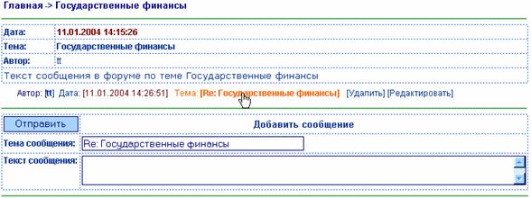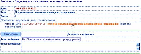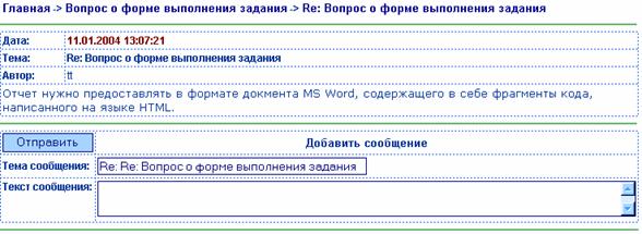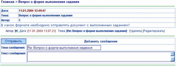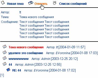 В случае, если вы хотите продолжить начатую тему или написать ответ к конкретному сообщению вам необходимо в общем списке выбрать ссылку интересующего вас сообщения. После того как вы перейдете к конкретному сообщению в появившемся окне необходимо выбрать пункт «Ответить».