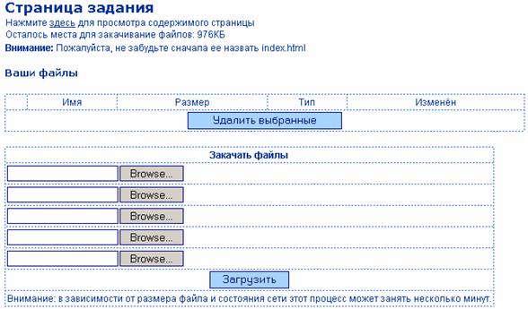 Данный инструмент предоставляет возможность создавать и управлять личной домашней страницей. Это очень удобное и наглядное средство передачи информации. Каждый зарегистрированный пользователь имеет возможность создать свою собственную web-страницу. В ней может содержаться личная информация о пользователе или любая другая информация, относящаяся к теме образования. Общий объем закачиваемых файлов не должен превышать 959 КБ.