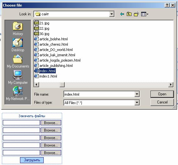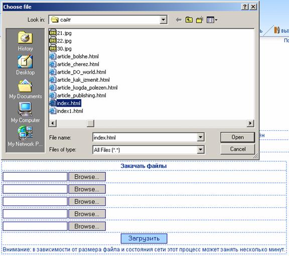 Для того чтобы загрузить необходимые файлы нужно в разделе «Домашняя страница» в таблице «Закачать файлы» в пустом поле указать полный путь расположения соответствующего файла или же нажать на кнопку «Browse…» и выбрать в появившемся окне требующийся файл.
