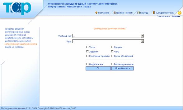 Благодаря возможностям данной оболочки, каждый обучаемый в ММИЭИФП может: