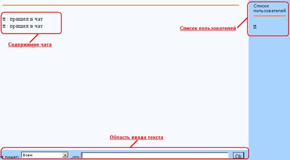 В центральной части экрана появится ваше сообщение. Там же отображаются все сообщения, адресованные вам или всем пользователям, участвующим в чате.