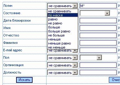 Для поиска конкретного человека необходимо ввести нужное значение в соответствующую графу. Например, нам необходимо написать письмо человеку, чье имя начинается на букву М. В этом случае в графе «Логин» необходимо ввести значение «по маске» равное «М*».