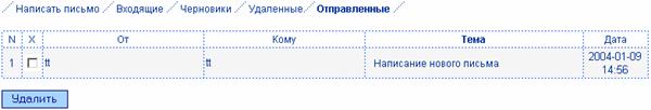 Все отправленные письма автоматически попадают в раздел «Отправленные». Здесь располагается таблица с перечнем отправленных писем.