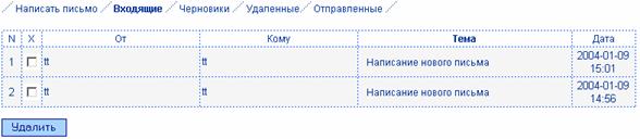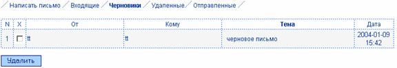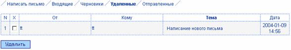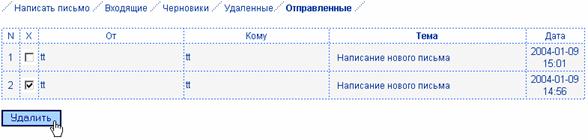 Все письма, удаляемые из разделов «Отправленные», «Входящие» и «Черновики», перемещаются в раздел «Удаленные». Для их окончательного удаления, необходимо пометить соответствующие письма галочками и нажать кнопку «Удалить».