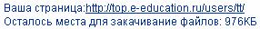 Адрес домашней страницы создается автоматически. Он указывается после слов «Ваша страница:». Ниже отображается объем свободного пространства для закачивания файлов.