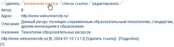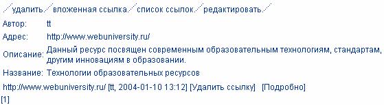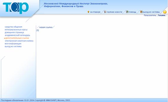 Данный раздел играет немаловажную роль, так как здесь хранятся ссылки на дополнительную литературу. Ссылки могут добавляться преподавателем/администратором для студента или же самим студентом. Они могут иметь сколько угодно уровней вложенности и составлять древовидную структуру тем.