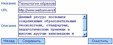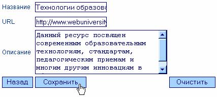 При выборе пункта меню «Редактировать» появится следующая форма для редактирования информации о ссылке. После внесения всех изменений необходимо нажать на кнопку «Сохранить».