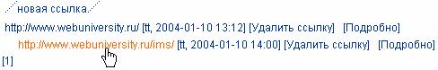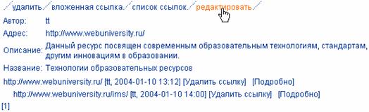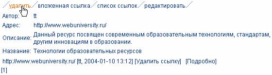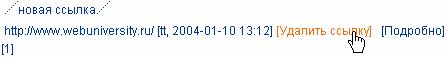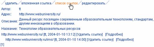 Для возврата в общий список необходимо нажать в строке меню пункт «Список ссылок».