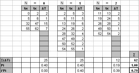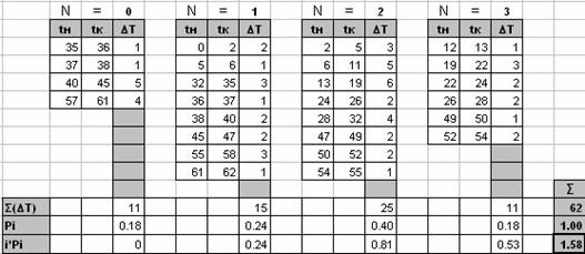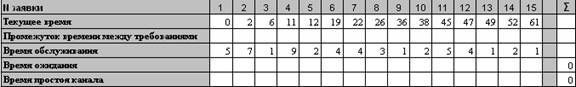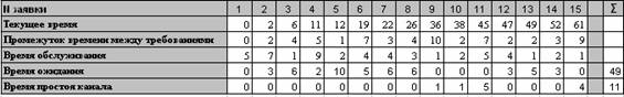 создав, например, отдельные таблицы для групп с числом заявок в очереди равным 0, 1, 2, …и занося значения времени начала (tн) и окончания (tк) каждого периода в соответствующие столбцы.