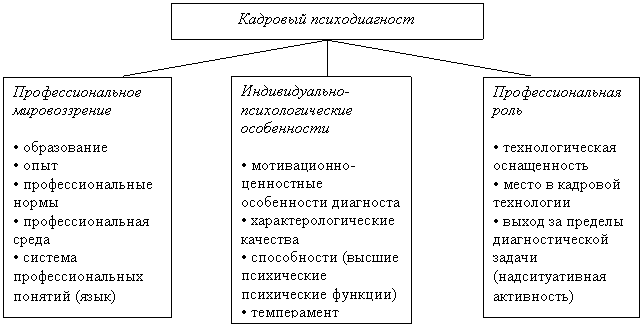 6. В структуре требований к кадровому психодиагносту выделяются профессиональное мировоззрение, индивидуально-психологические особенности и техническая оснащенность.