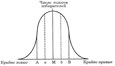 Модель медианного избирателя (median voter model) - модель, характеризующая существующую в рамках прямой демократии тенденцию, согласно которой принятие решений осуществляется в интересах избирателя-центриста (человека, занимающего место в середине шкалы интересов данного общества).
