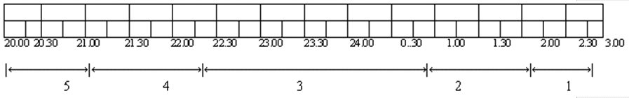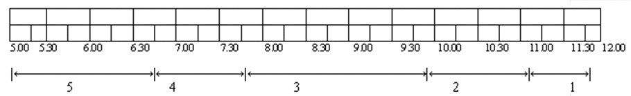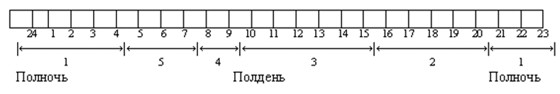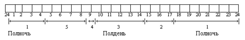 Представьте, что Вы сами можете выбрать график своего рабочего времени. Какой 5-ти часовой непрерывный график работы Вы выберете, чтобы работа стала для Вас интереснее и приносила большое удовлетворение? (Перечеркните крестиками пять клеточек. При подсчете берется большее цифровое значение).