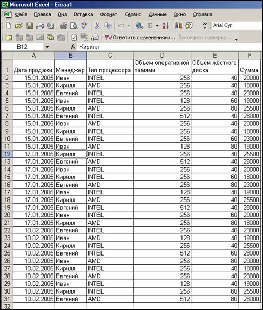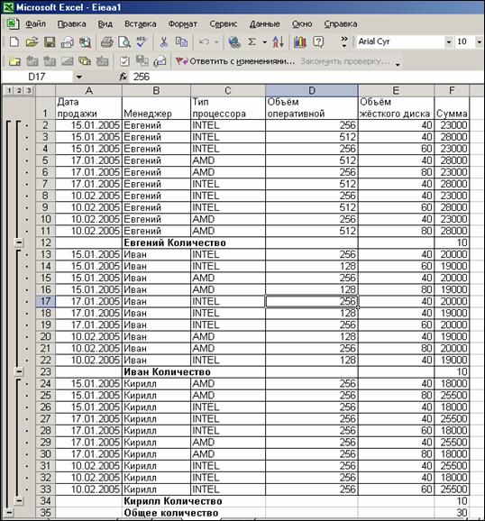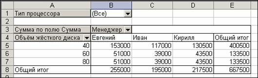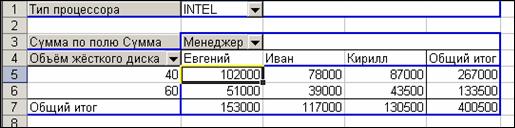 Рисунок 11. OLAP – отчет в Microsoft Excel.