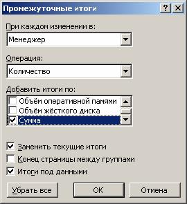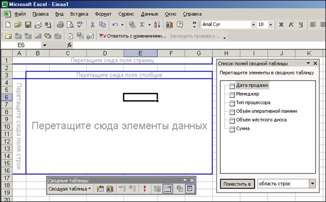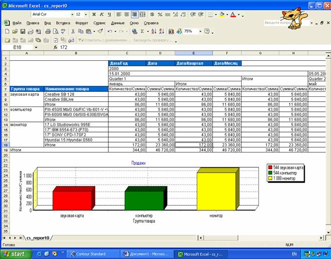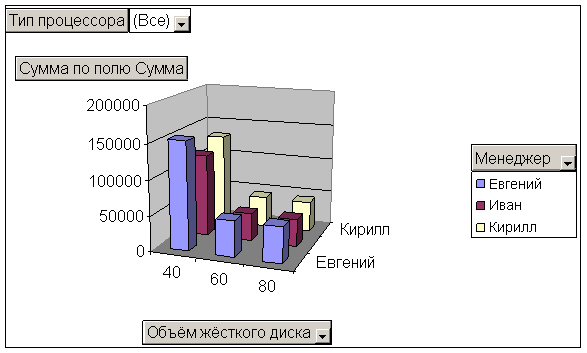 OLAP – таблица позволяет интерактивно управлять вычислениями и формой отчета. Инструментами управления динамической таблицей являются ее элементы – колонки и строки. Пользователь может перемещать их, удалять, фильтровать и выполнять другие OLAP-операции. При этом OLAP-машина автоматически вычисляет новые промежуточные и окончательные итоги. Таблица иллюстрируется графиком, который синхронно отображает изменения в таблице.