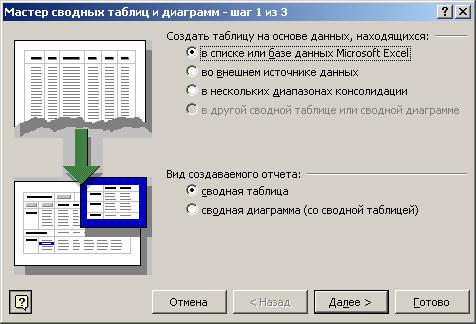 Таблицы – это плоские списочные отчеты, сопровождаемые графиками. В таблице можно быстро строить различные графики и диаграммы (рис. 12). Это позволяет оперативно менять «точку зрения» на анализируемые данные в поисках зависимостей и тенденций.