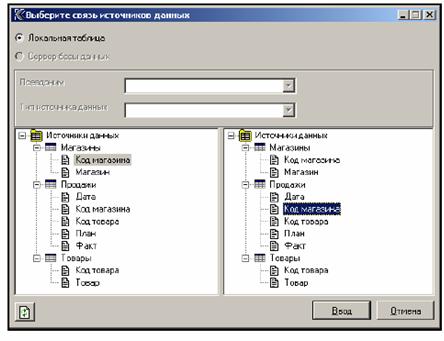 На первом этапе настройки OLAP-приложения определим путь к БД “Northwind” и в терминах предметной области опишем ее структуру (таблицы и отдельные поля этих таблиц). Описывая таблицы, выберем только те поля, которые нам необходимы для анализа. Для удобства российских пользователей при описании источников данных (таблиц и их полей) дадим им русскоязычные имена. Далее в отчетах пользователей будут фигурировать именно эти наименования.
