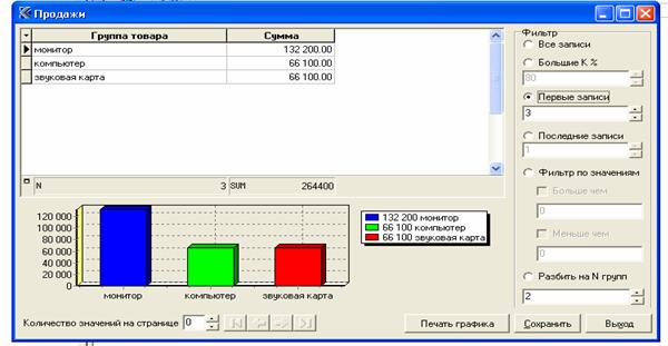 5. «Фильтр по значениям » – отображение записей, отсортированных по введенному значению факта (больше или меньше данного значения).