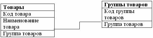 · Products (Товары): ProductID (Код товара), ProductName (Наименование товара), CategoryID (Группа товаров).