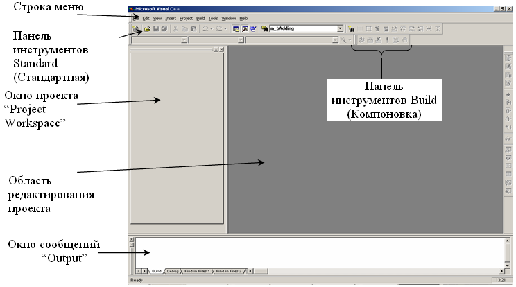 Главное окно Visual C++ является частью Microsoft Developer Studio — интегрированной среды, общей для Visual C++, Visual J++, Visual FoxPro и некоторых других продуктов.