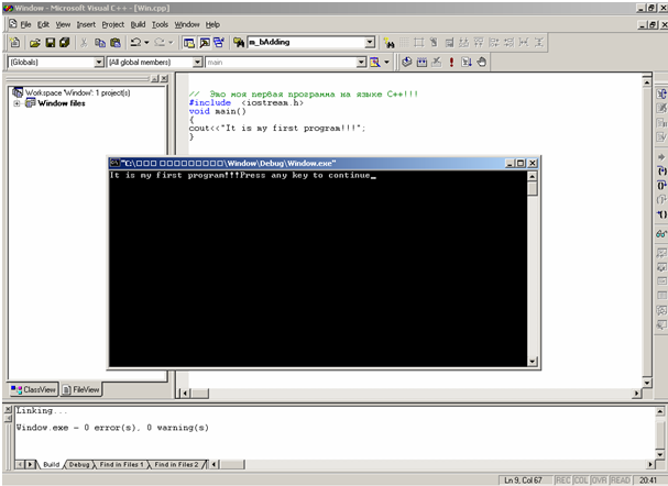 2.1. Создание проекта и выполнение программы в Visual C++ 6.0