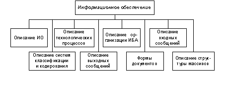 В состав ИО входят два комплекса: компоненты внешнего (относительно ЭВМ) информационного обеспечения (классификаторы технико-экономической информации и документы) и внутримашинного информационного обеспечения (макеты/экранные формы для ввода первичных данных в ЭВМ или вывода результатной информации, структура информационной базы: входных, выходных файлов, базы данных).