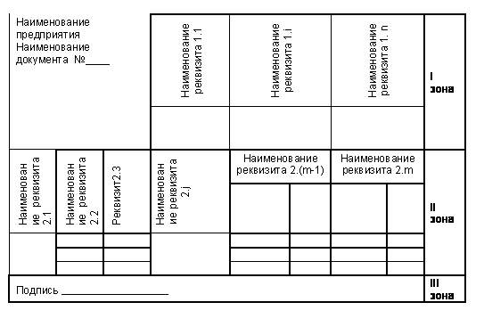 III - оформительная зона, в которой, как правило, располагаются подписи должностных лиц.