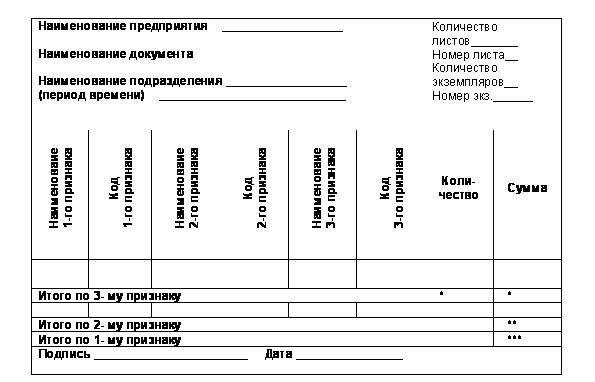 • выделение реквизитов-оснований и размещение их в последовательности, противоположной той, в какой выстраиваются группировочные реквизиты, по которым рассчитываются итоги (т.е. от первичных оснований - к результатным, а среди результатных - размещение их в порядке возрастания старшинства итога);