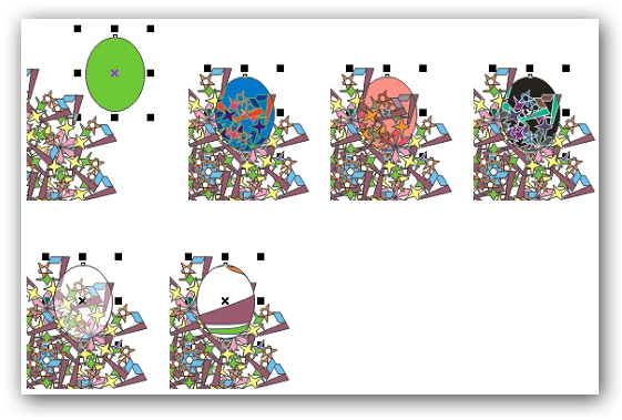 Прозрачность (Interactive Transparency Tool). Прозрачность делает объект частично видимым и частично прозрачным для нижних объектов. Прозрачность может быть равномерная или более сложная (фонтанная, текстурная). Более сложными могут быть и способы получения результирующего цвета (Рисунок 15): сложением, умножением и т.д. цветов.