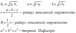 В прямоугольном треугольнике высота, проведенная из вершины прямого угла, разбивает его на два треугольника, подобные исходному.