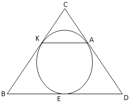 2. CK = CA = 10 (отрезки касательных, проведенные из одной точки), CB = CD, следовательно AD = CD – CA, AD = 25 – 10 = 15