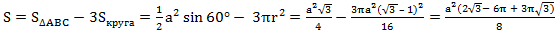 Внутри правильного треугольника со стороной a расположены три равные окружности, каждая из которых касается двух сторон треугольника и двух других окружностей. Найти площадь части треугольника, расположенной вне этих окружностей.