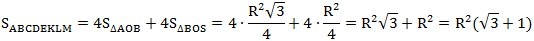 Вся дуга окружности радиуса R разделена на 4 большие и 4 малые части, которые чередуются одна за другой. Большая часть в два раза длиннее малой. Определить площадь восьмиугольника, вершинами которого являются точки деления дуги окружности.