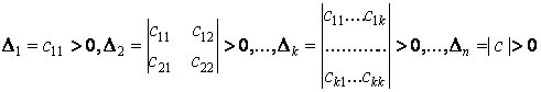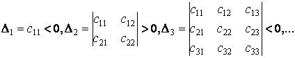 т.е. что знаки главных миноров матрицы C чередуются, начиная со знака минус.