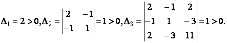была положительно определенной, а значит, чтобы все главные миноры матрицы