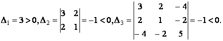 Пример. Вычислить, является ли квадратичная форма положительно (отрицательно) определенной или неопределенной.