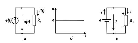 Рис. 7.2. Идеальный источник ЭДС и его ВАХ
