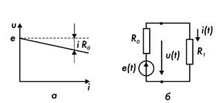 Чтобы активные двухполюсники играли в устройствах роль источников ЭДС, их вольтамперные характеристики должны спадать слабо. То есть падение напряжения на внутреннем сопротивлении источника (iR0) для любых протекающих в цепи токов должно быть существенно меньше его ЭДС. Это достигается при малости сопротивления R0 по сравнению с теми сопротивлениями, которые подключаются к полюсам источника.