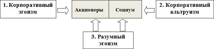 Базовые концепции корпоративной социальной ответственности включают: теорию корпоративного эгоизма, теорию корпоративного альтруизма, теорию разумного эгоизма.