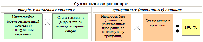 23. В чем различие начисления суммы акциза при твердых и процентных налоговых ставках?
