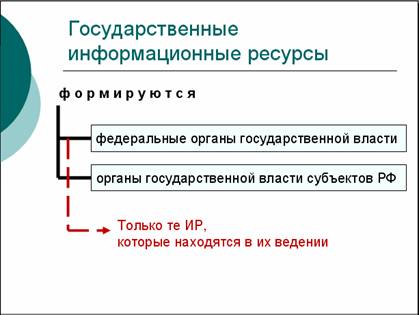 Государственные информационные ресурсы это такие ресурсы, которые как элемент имущества находятся в собственности государства. |