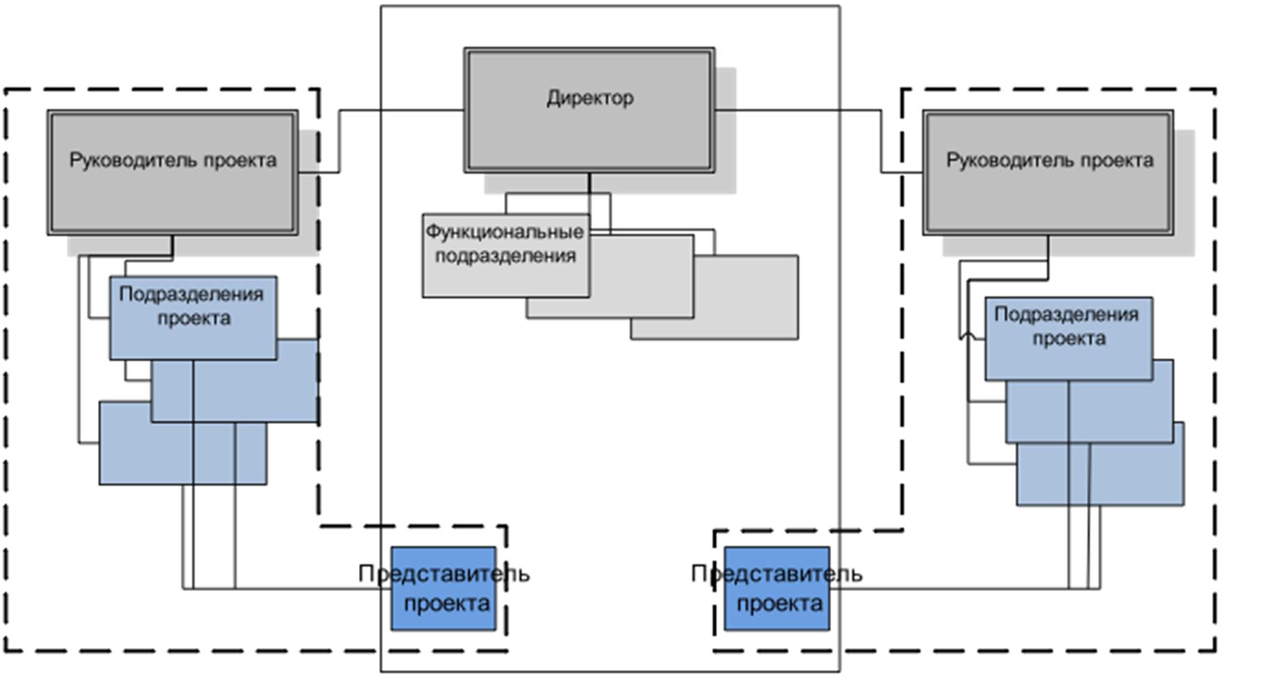 При этом если планируемый проект представляется разовым для материнской организации, возможны варианты использования «выделенной» организационной структуры (при этом степень «выделенности» может быть разной) [9] Рис. 1.